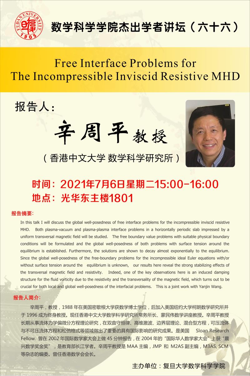 In this talk I will discuss the global well-posedness of free interface problems for the incompressible inviscid resistive MHD. Both plasma-vacuum and plasma-plasma interface problems in a horizontally periodic slab impressed by a uniform transversal magnetic field will be studied. The free boundary value problems with suitable physical boundary conditions will be formulated and the global well-posedness of both problems with surface tension around the equilibrium is established. Furthermore, the solutions are shown to decay almost exponentially to the equilibrium. Since the global well-posedness of the free-boundary problems for the incompressible ideal Euler equations with/or without surface tension around the equilibrium is unknown, our results here reveal the strong stabilizing effects of the transversal magnetic field and resistivity. Indeed, one of the key observations here is an induced damping structure for the fluid vorticity due to the resistivity and the transversality of the magnetic field, which turns out to be crucial for both local and global well-posedness of the interfacial problems. This is a joint work with Yanjin Wang.