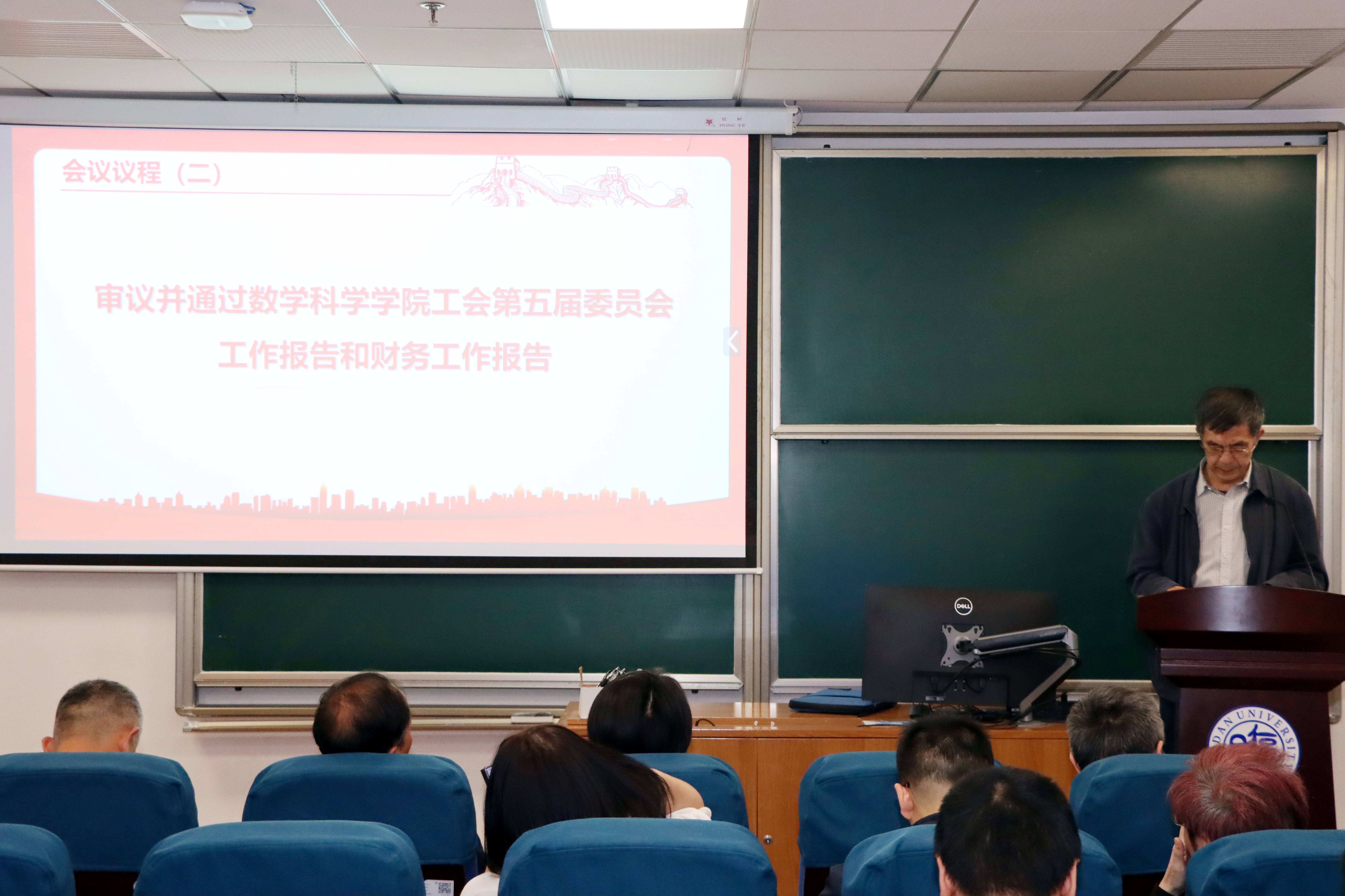 数学科学学院第五届工会主席朱胜林代表上一届委员会作工作报告,全面回顾了过去五年工会在民主管理、权益保障、文体活动等方面的工作成果,并就工会经费使用情况作了详细说明。报告内容详实,数据准确,获得与会代表的一致通过。