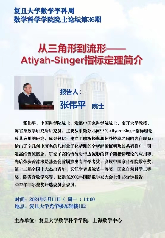 我们将沿着微分几何发展的一条主线,介绍被誉为二十世纪数学最重要定理之一的Atiyah-Singer指标定理。