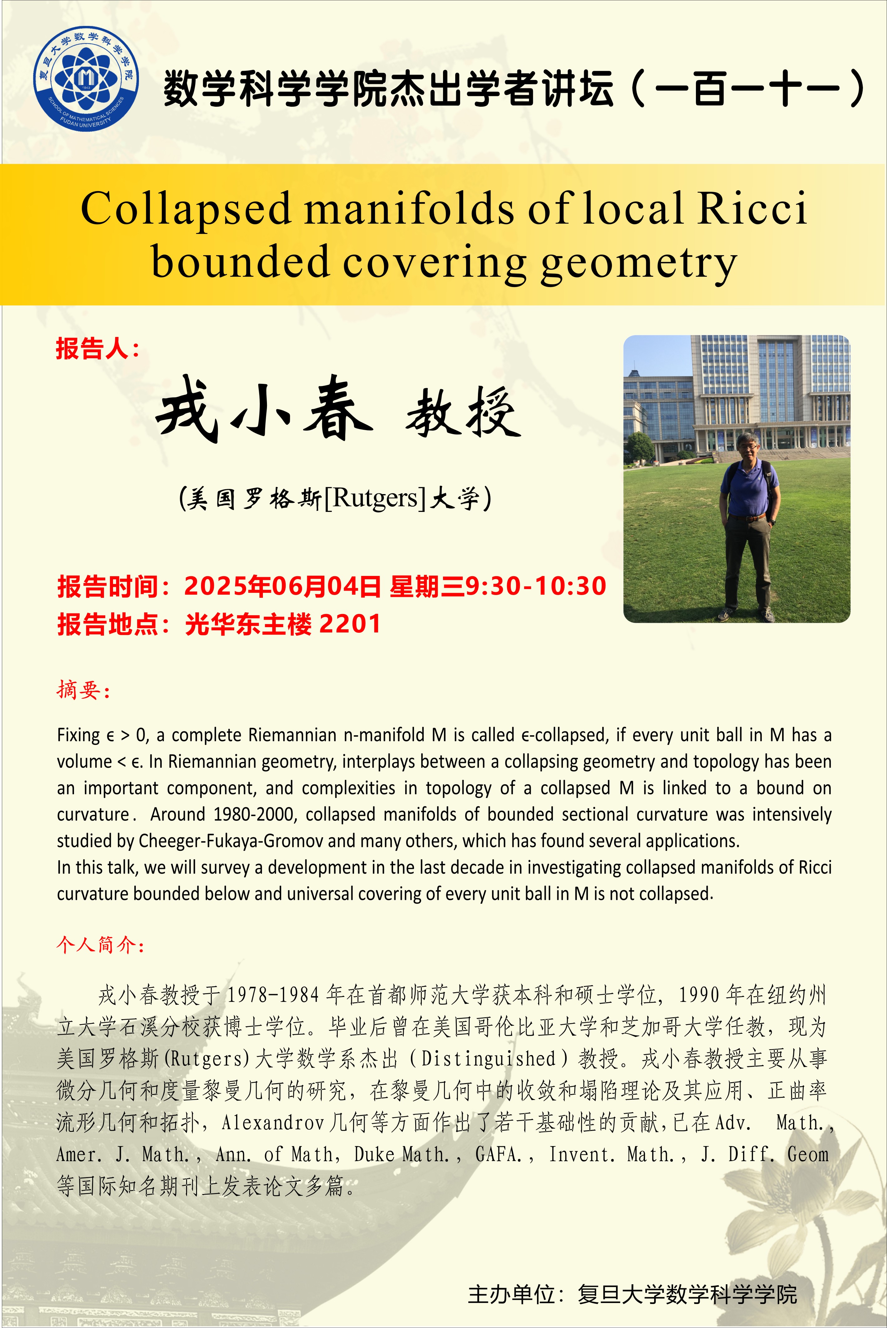 Fixing ϵ > 0, a complete Riemannian n-manifold M is called ϵ-collapsed, if every unit ball in M has a volume < ϵ. In Riemannian geometry, interplays between a collapsing geometry and topology has been an important component, and complexities in topology of a collapsed M is linked to a bound on curva ture. Around 1980-2000, collapsed manifolds of bounded sectional curvature was intensively studied by Cheeger-Fukaya-Gromov and many others, which has found several applications.