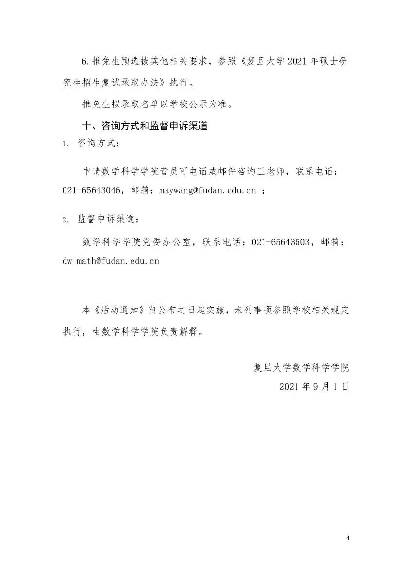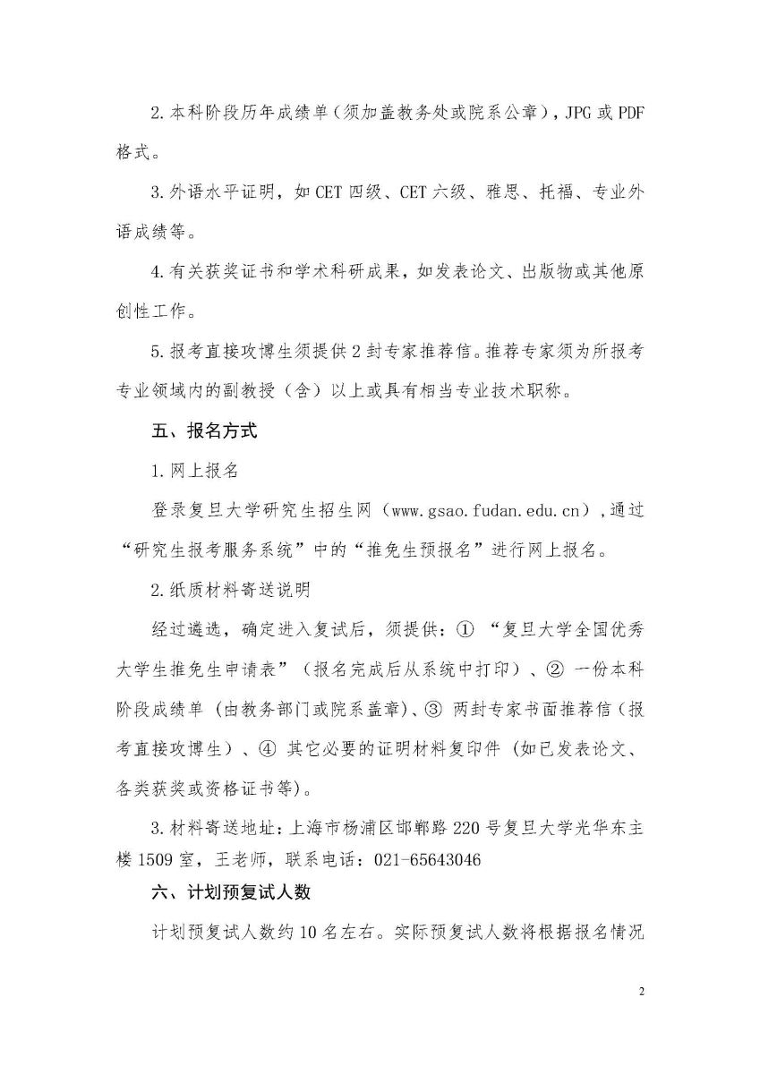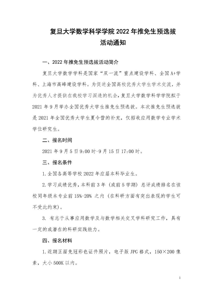2021年复旦大学数学科学学院全国优秀大学生推免生预选拔