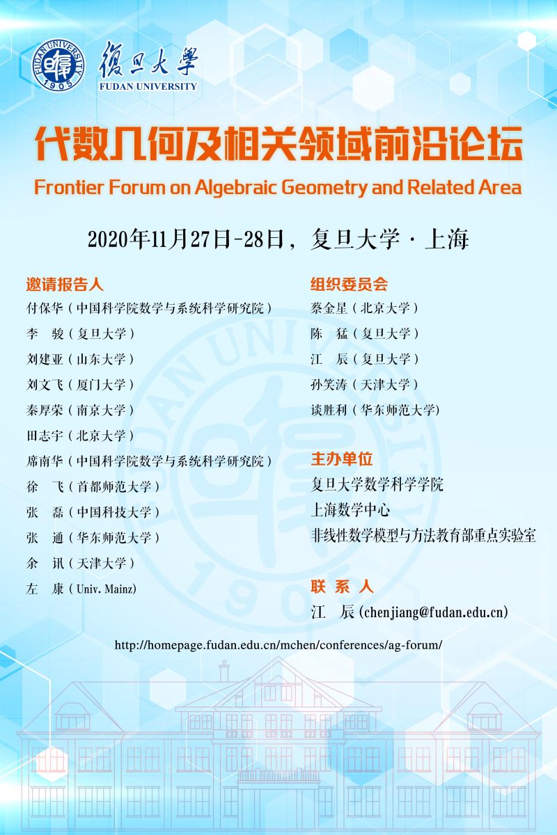 | 主办单位: | 复旦大学数学科学学院、上海数学中心、非线性数学模型与方法教育重点实验室 |