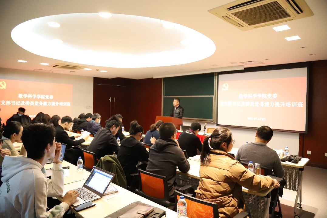 为深入学习贯彻《中国共产党普通高等学校基层组织工作条例》要求,教育引导党支部书记明确党支部建设任务,掌握开展党支部工作、落实基层党建工作的基本要求,切实提高工作水平,增强责任感使命感,数学科学学院党委联合学校党委党校办共同举办数学科学学院党委党支部书记及委员党务能力提升培训班。
