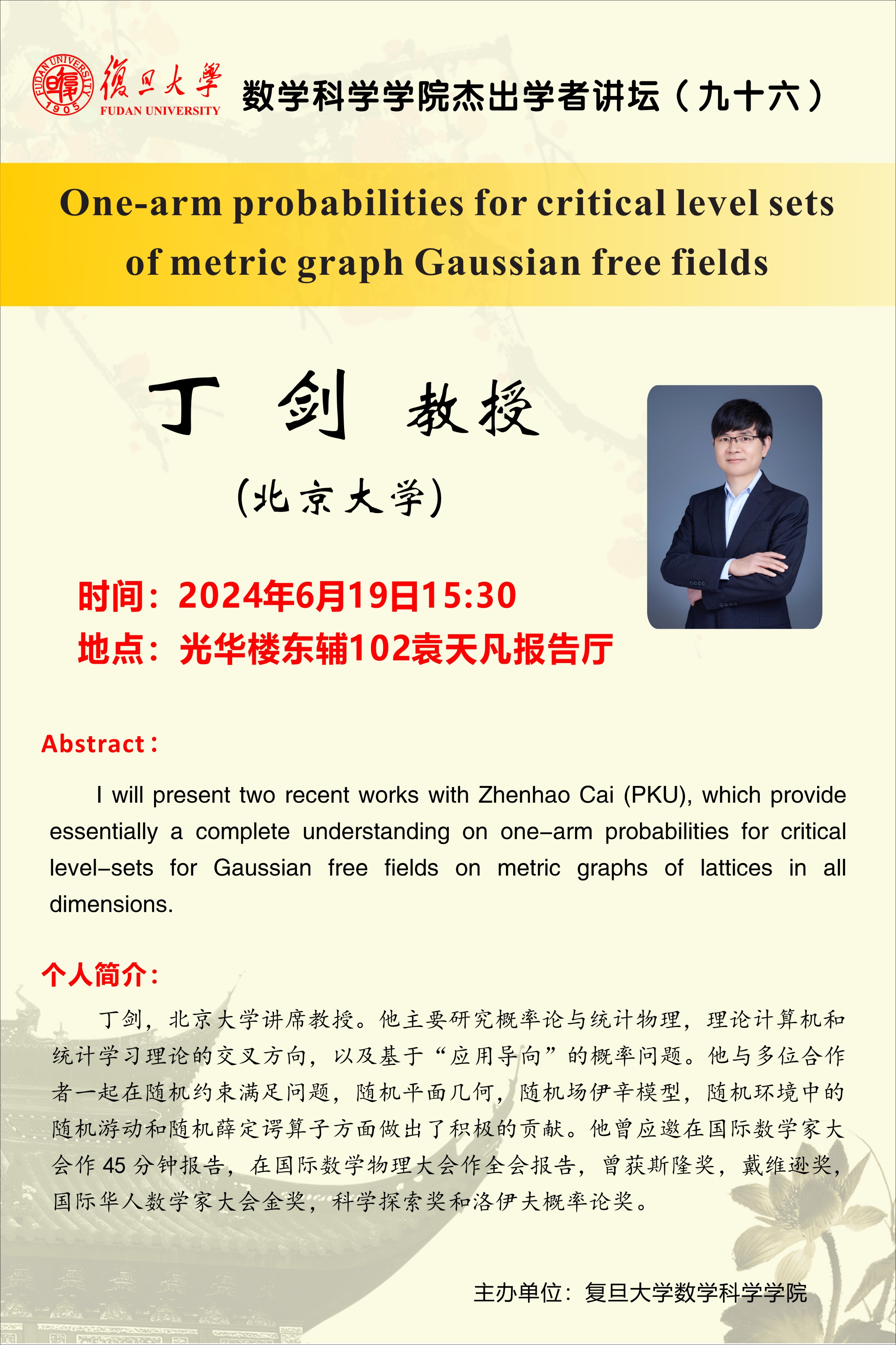 杰出学者讲坛报告(九十六):One-arm probabilities for critical level sets of metric graph Gaussian free fields