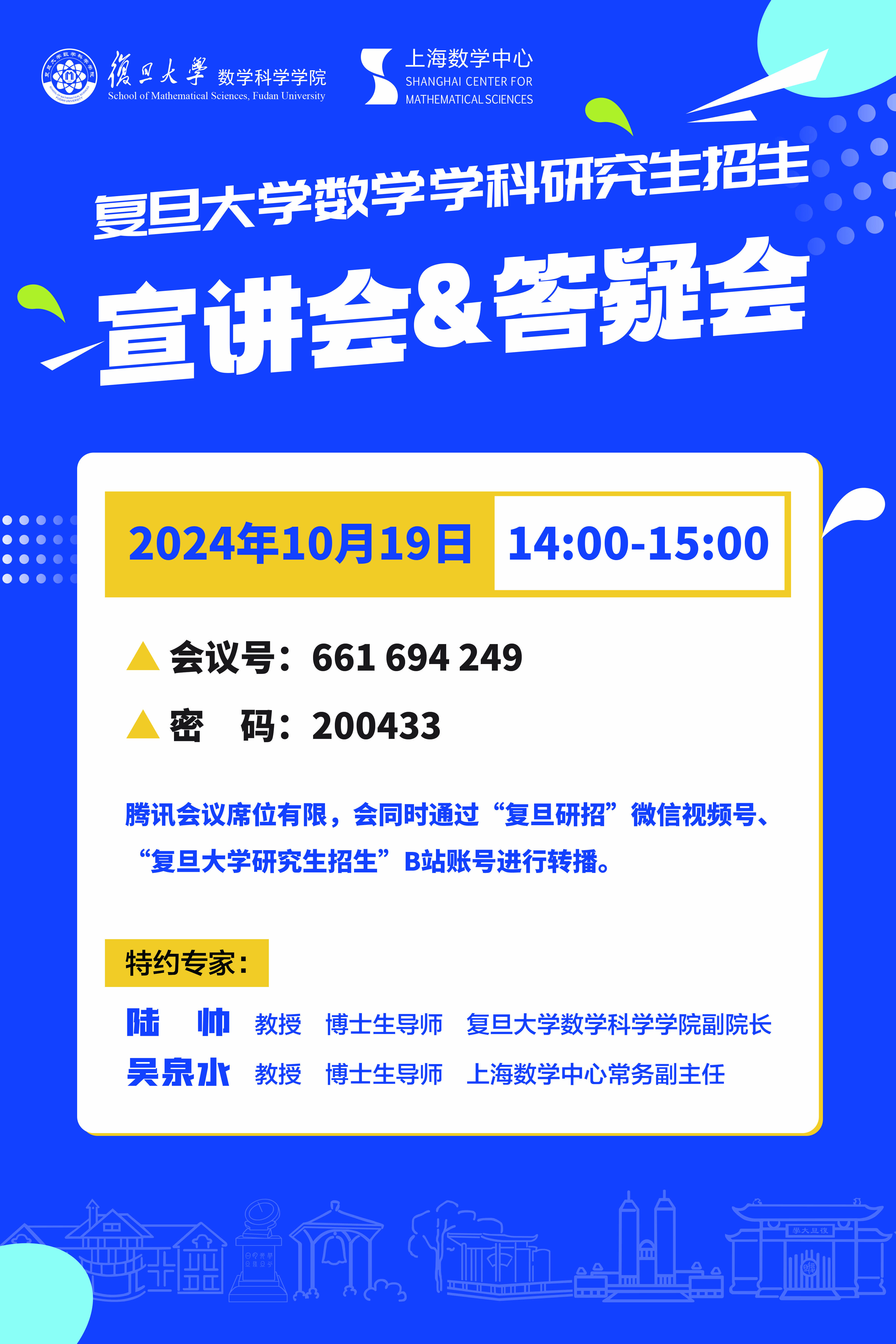 复旦大学数学学科研究生招生宣讲会&答疑会