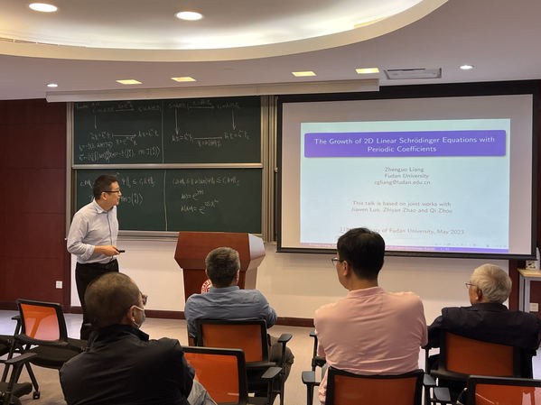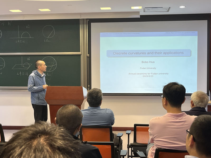 2023年5月23日(星期二)下午,数学科学学院在复旦大学光华东主楼2201室召开了2023年校庆报告会暨非线性数学模型与方法教育部重点实验室学术年会。首先程晋教授做了题为“若干信息重构问题的理论与算法”的精彩报告。然后,请青年教师华波波教授、梁振国副教授分别做了题为 “Discrete curvatures and their applications”、“The growth of 2d Schrodinger Equations with time periodic coefficients and quadratic polynomials symbols” 的学术报告,介绍了最新的学术进展。