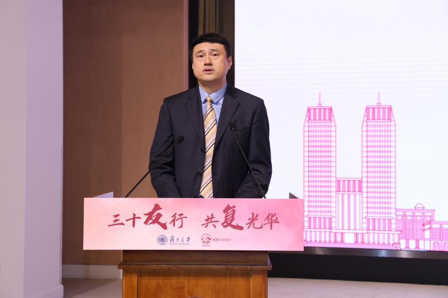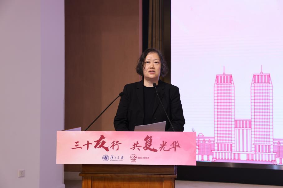 会上,许征代表学校对友邦-复旦精算中心成立三十年来所取得的卓越成绩致以热烈的祝贺,向长期以来关心和支持中心发展的社会各界人士表示衷心感谢。她深情回顾了友邦与复旦的绵长情谊,历数了友邦-复旦精算中心、史带楼及友邦堂等学校历年来受到友邦支持所建设的项目,赞赏友邦与复旦的往来是校企双向合作、共谋发展的生动写照。她表示,在友邦-复旦精算中心成立30周年之际,友邦保险公司以十年为约,升级校企合作能级,设立“复旦-友邦精算及金融研究基金”,再次携手复旦大学面向未来精心谋划,这既是友邦与复旦大学深厚情谊的延续,更是双方对未来共同发展的坚定承诺。