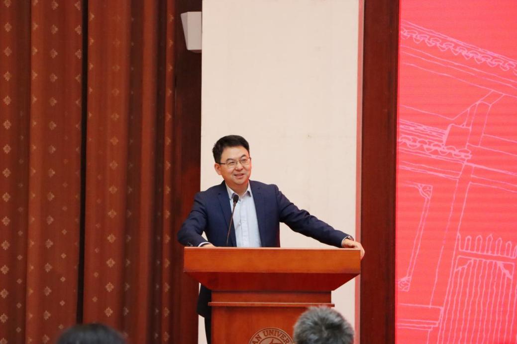 雷震作表态发言,表示完全拥护、坚决服从学校党委的决定。他深情回顾了担任院长以来的工作历程,感谢学校对他工作的支持和肯定,感念全院同志的并肩努力,并祝愿学院在沈维孝院长的带领下,在开辟数学事业发展新征程中,人才辈出、惊喜不断。他表示,未来仍将不遗余力,全力支持数学科学学院各项事业发展。