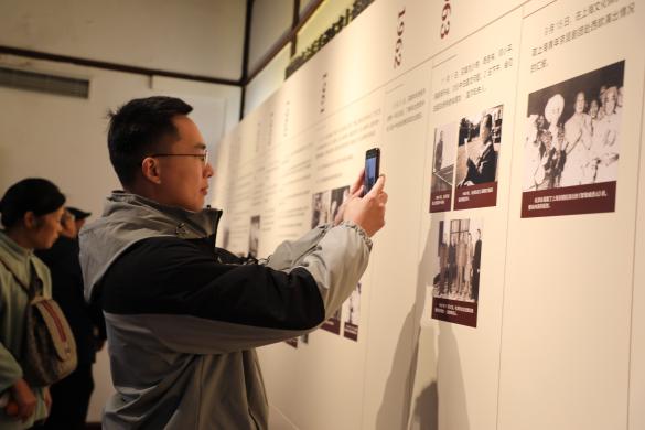 党课结束后,党员共同参观了伟人旧居和展厅。陈列馆内,展示了大量毛泽东1924年在上海执行部工作期间的书信、文件等展品与史料,以及杨开慧写给毛泽东的亲笔信,重现了毛泽东一家当年居住时的场景,重点展示了毛泽东在新民主主义时期在上海的活动足迹。