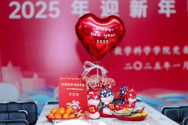 金蛇献瑞,千卷诗篇歌盛世;灵蛇起舞,万幅画卷绘华章。1月7日下午,数学科学学院党委、工会在光华楼一楼学生广场举行2025迎新年茶话会。数学科学学院、上海数学中心、应用数学中心(筹)的教职工和辅导员满怀激情,相聚言欢,挥手告别硕果累累的2024,共同期许充满希望的2025:蛇舞新春,数启华章!