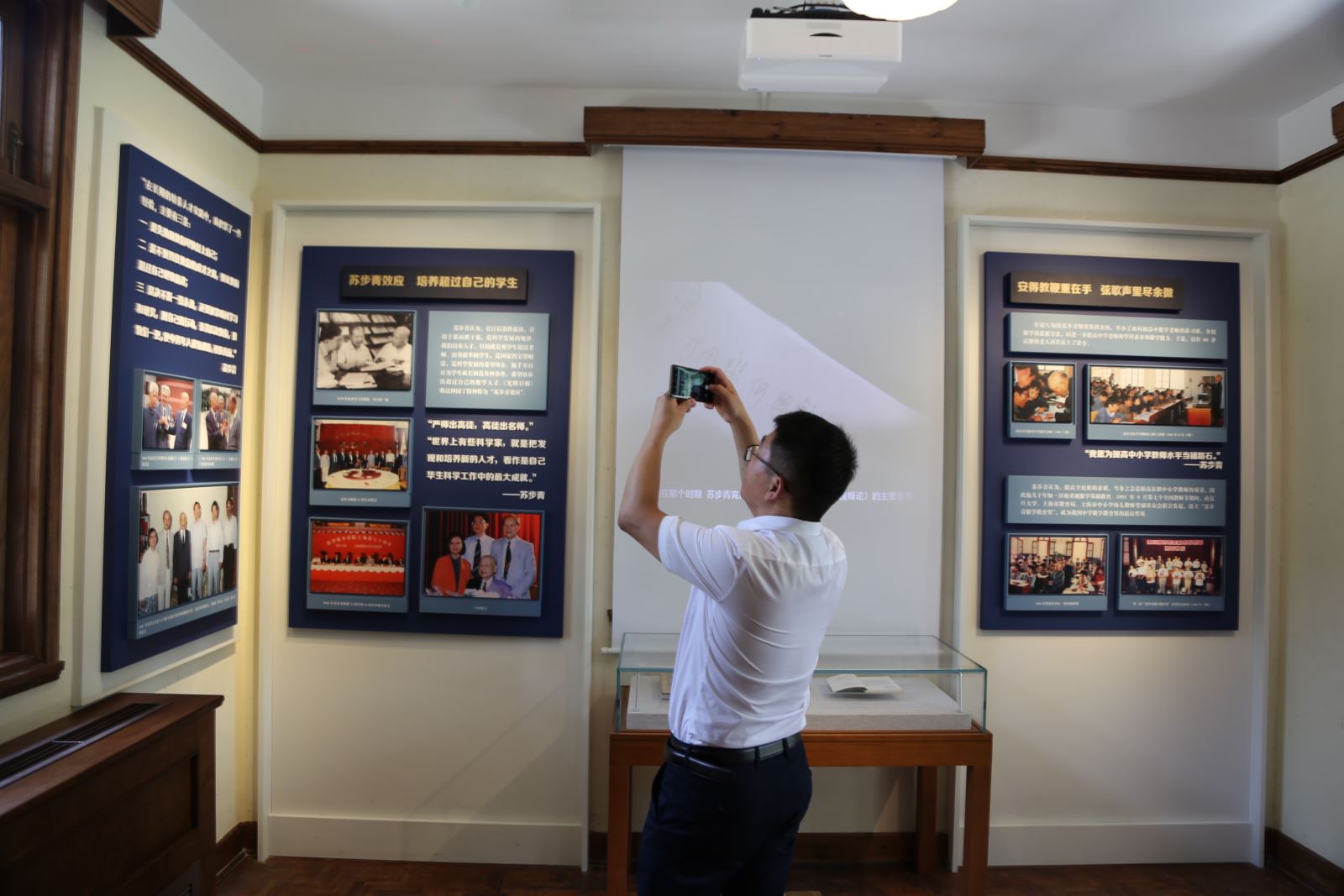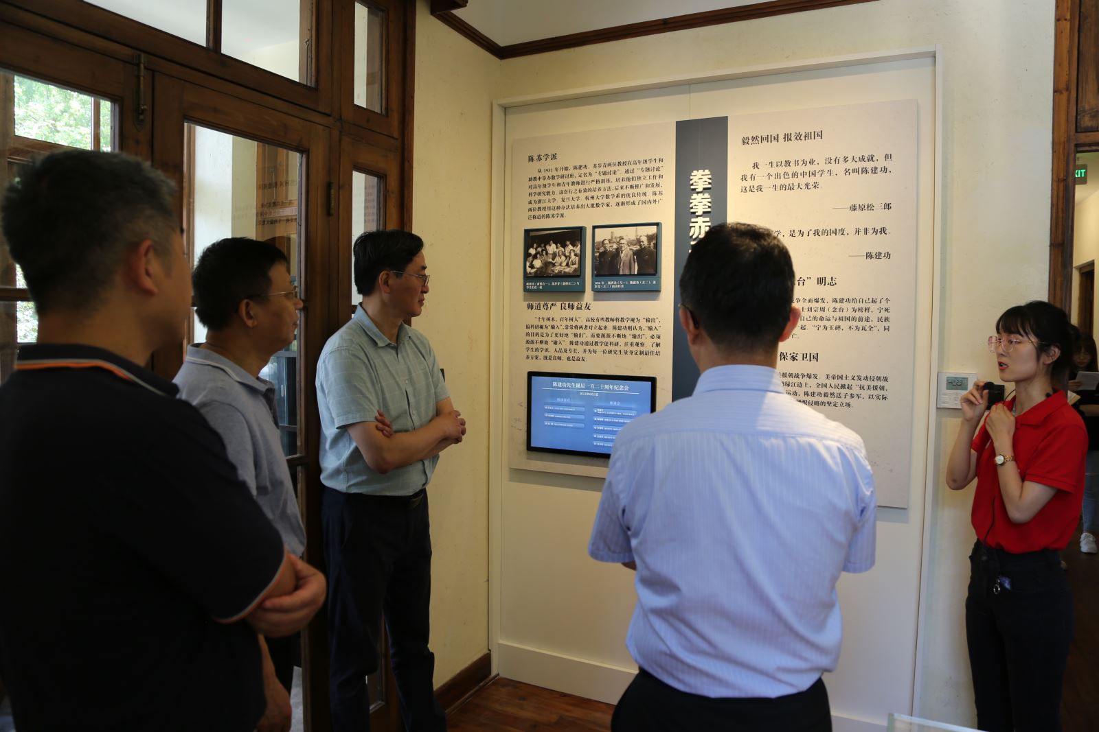 面对一件件珍贵的史料和照片,党委理论学习中心组成员不时停下脚步驻足仔细端详,仿佛回到了几十年前那个风雨如磐、国弱民艰的年代,对苏步青、谈家桢、陈建功这些先辈为党育人、为国育才,始终心系家国天下、立志造福人民的事迹精神有了更加直观鲜活的认识。