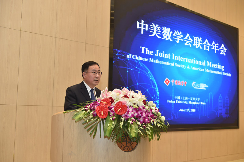 6月11日,中美数学会联合年会在复旦大学开幕。这次联合年会会期4天,共计700余人注册参会。复旦大学常务副校长桂永浩出席开幕式并致辞。美国数学会会长、美国科学院院士Kenneth A. Ribet,中国数学会副理事长、中科院院士、北京大学副校长田刚,中国数学会副理事长、中科院数学与系统科学研究院常务副院长高小山,美国科学院院士Richard M. Schoen,美国数学会副秘书长Steven H. Weintraub,上海数学会理事长、复旦大学教授陈晓漫等出席开幕式。开幕式由中国数学会秘书长、北京大学数学科学学院院长陈大岳主持。
