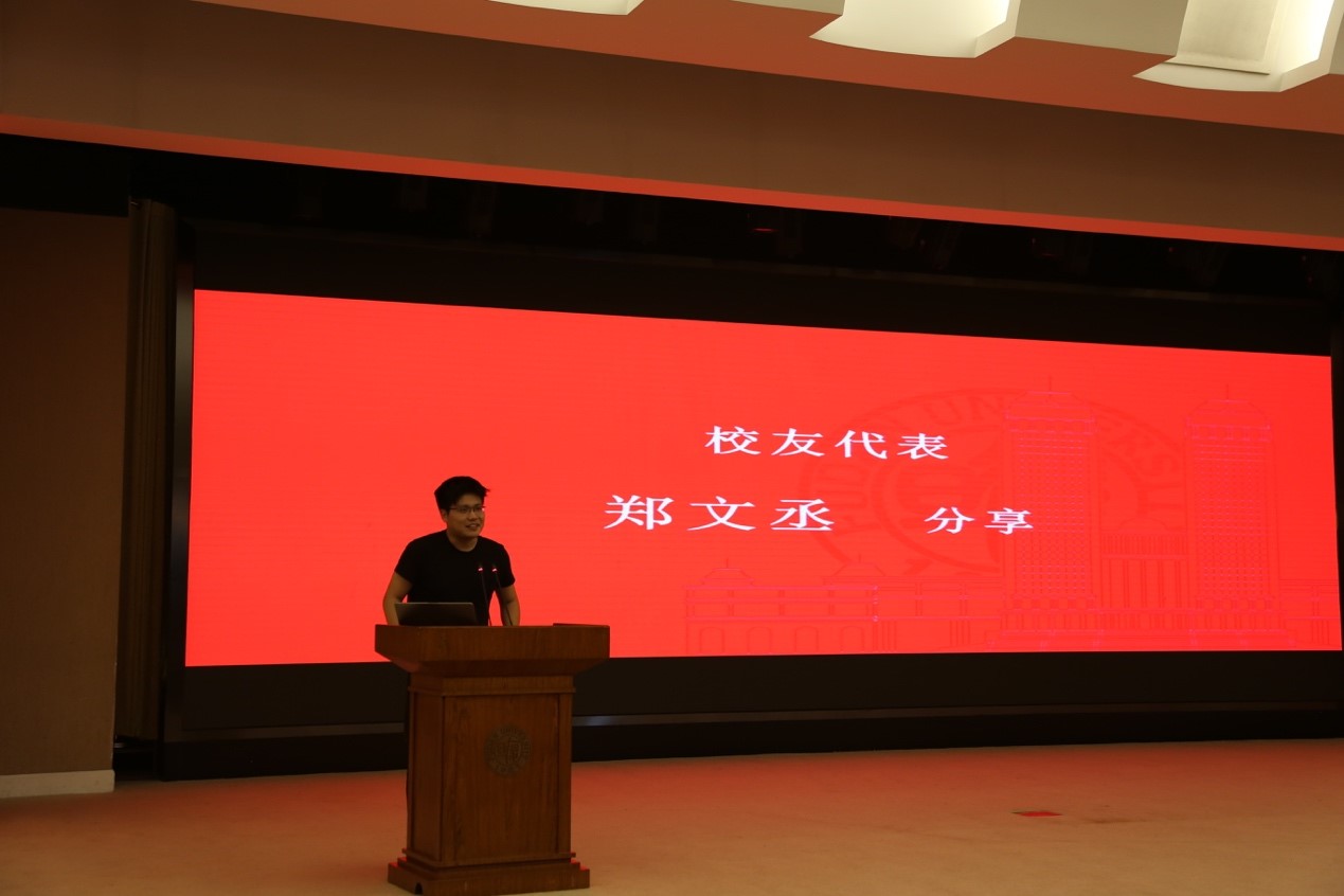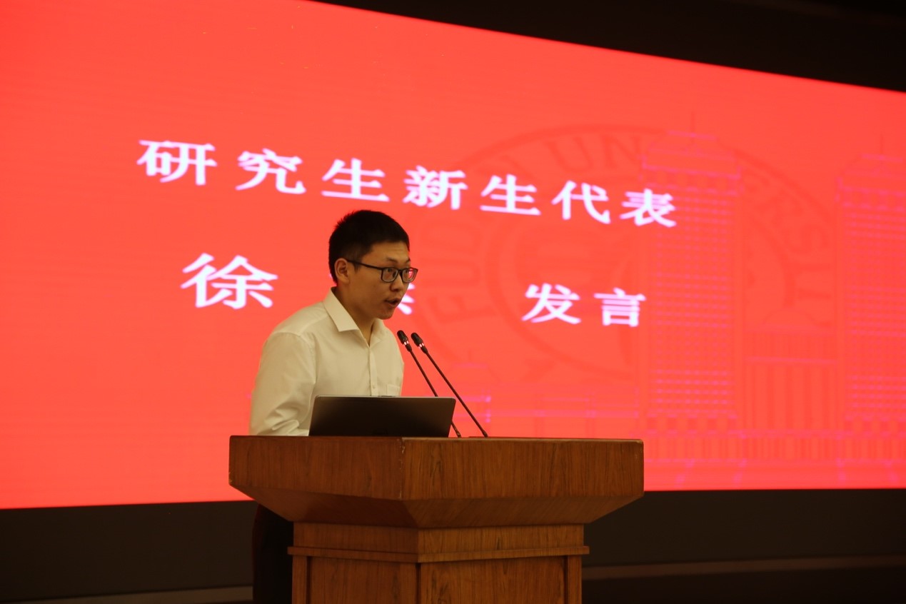 2011届本科校友代表、团中央2019年全国创新创业好青年、2019年全国向上向善好青年郑文丞学长发言,他从创业者的角度回顾自己在数学学院的学习生活,感谢四年数学学习给自己带来的收获和成长,鼓励学弟学妹们在数院的沃土中种下扎实的种子;本科生新生代表、研究生新生代表分别发言,表达了对即将开启的数学学习生活的憧憬和决心,面对数学专业学习道路的艰苦和挑战,要坚守初心、勇攀高峰,继承老一辈数学家前辈的精神财富,成长为一名合格的复旦数学人。