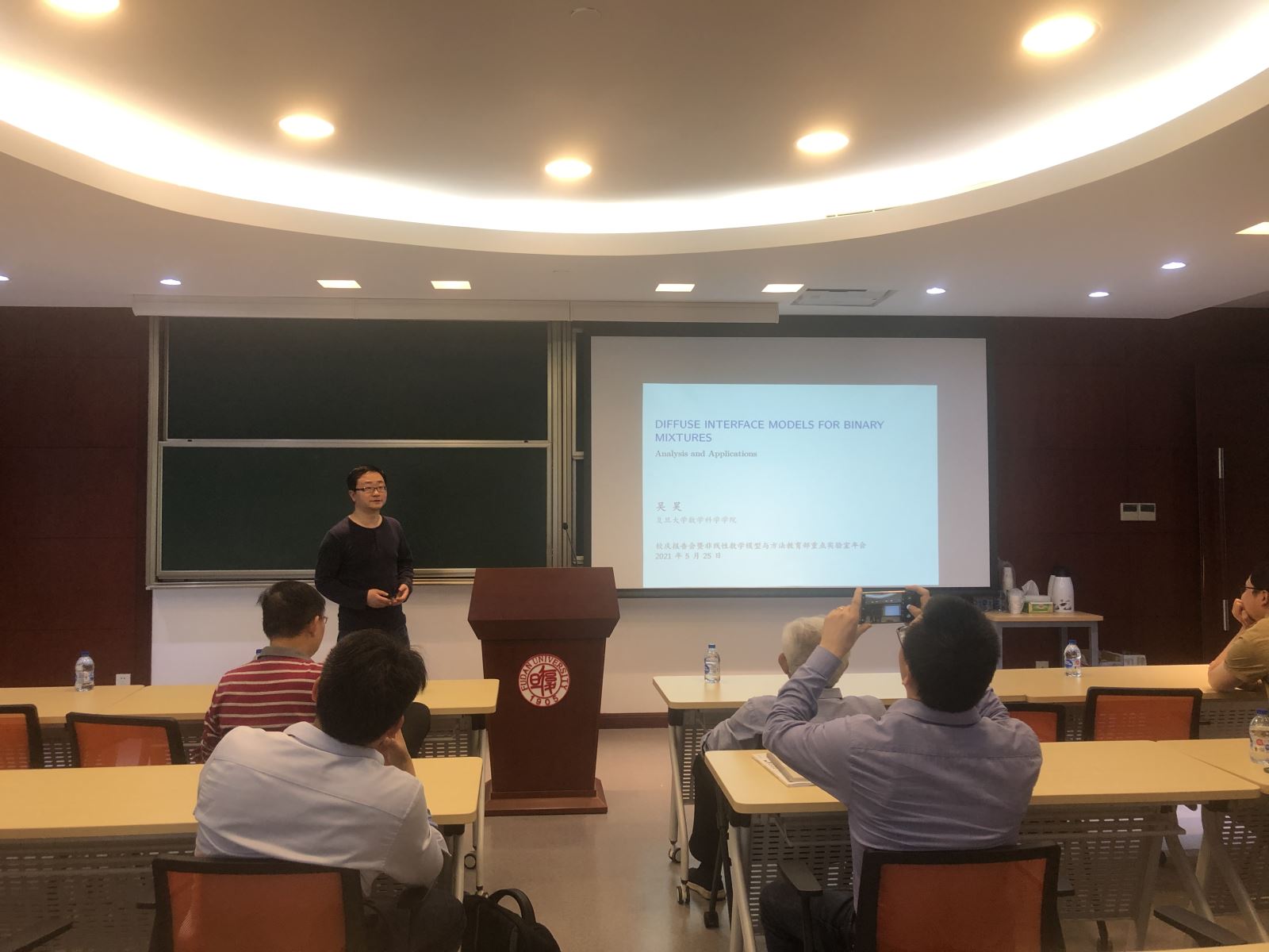 2021年5月25日(星期二)下午,数学科学学院在复旦大学光华东主楼2201室召开了2021年校庆报告会暨2021年非线性数学模型与方法教育部重点实验室学术年会。首先上海数学中心首席李骏教授做了题为“The GW theory of quintic Calabi-Yau, after BCOV and YY”的精彩报告。然后,非线性数学模型与方法教育部重点实验室副主任吴昊教授做了题为“Diffuse interface models for binary mixtures: analysis and application”学术报告,介绍了最新的学术进展。