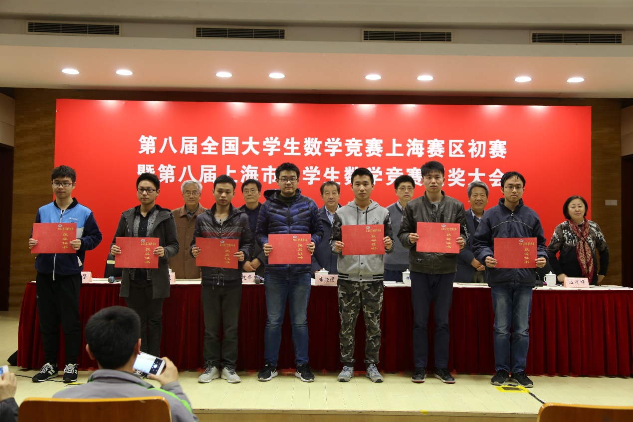 非数学专业:邹君逸(华东理工大学)一等奖、曹彦卿(上海财经大学)一等奖、何可(上海交通大学)一等奖、郭林(同济大学)二等奖、姜沁源(华东理工大学)二等奖、杨耀斌(同济大学)二等奖、胡特(同济大学)二等奖、许鹏选(同济大学)三等奖、王子恒(同济大学)三等奖。