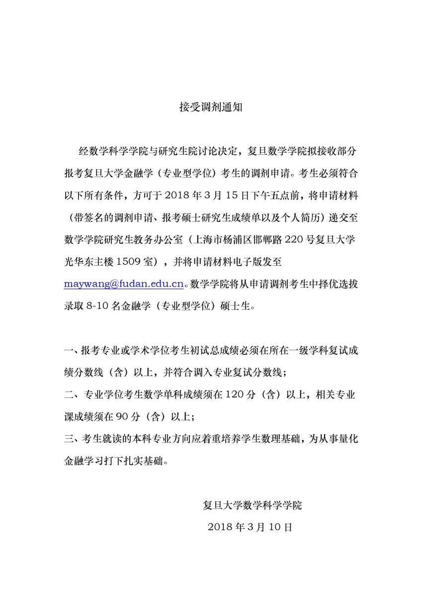 有意申请的同学,请务必在复旦大学研究生报名系统中进行调剂申请