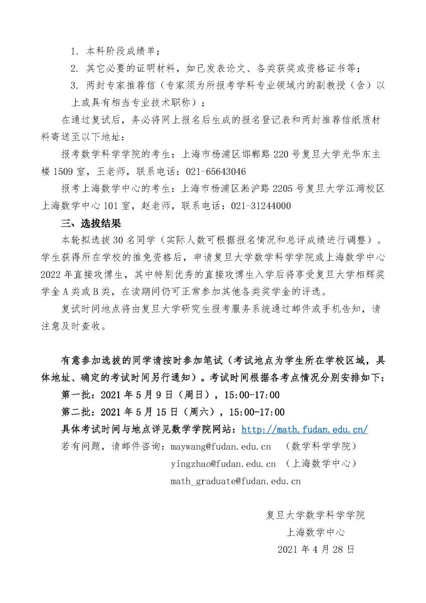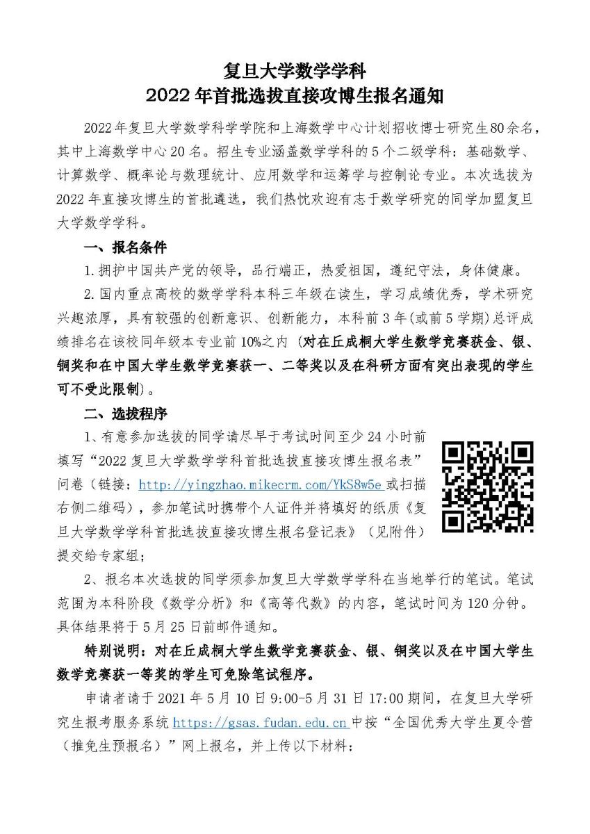 复旦大学数学学科首批选拔直接攻博生报名登记表.docx
