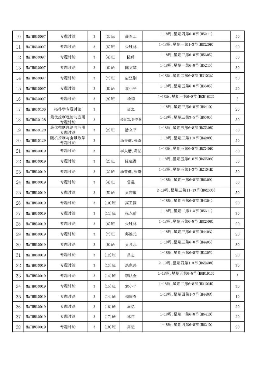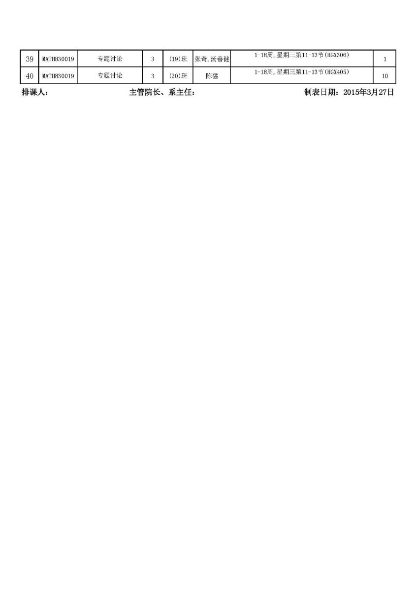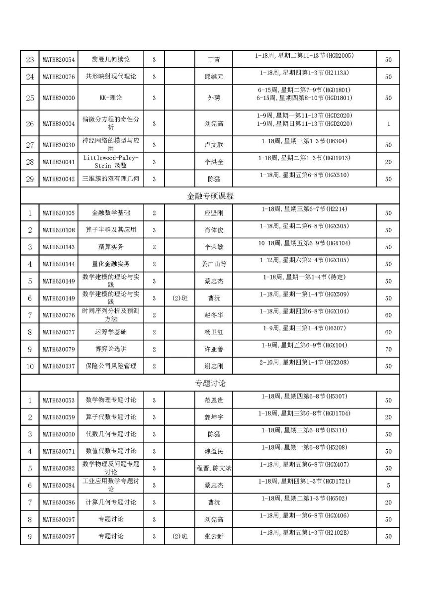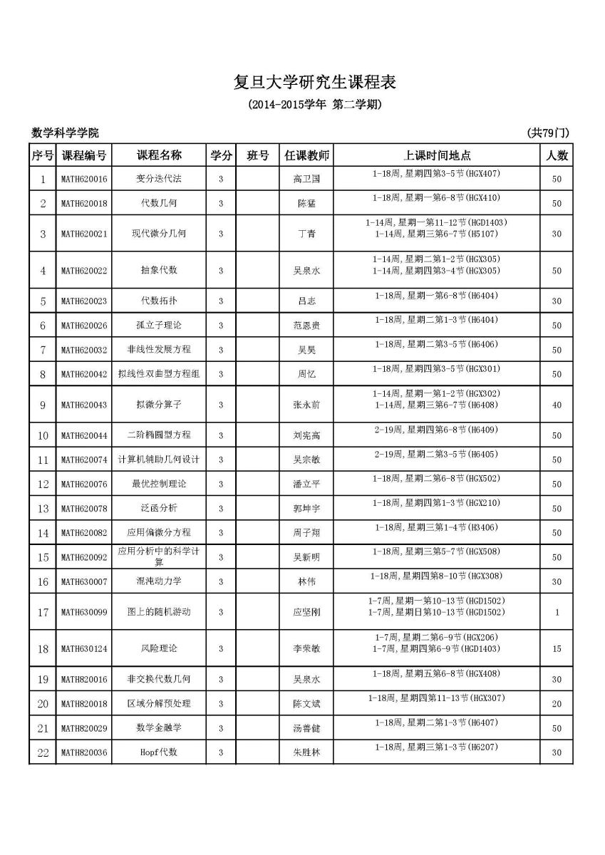 2014-2015第二学期复旦大学数学科学学院研究生课程表