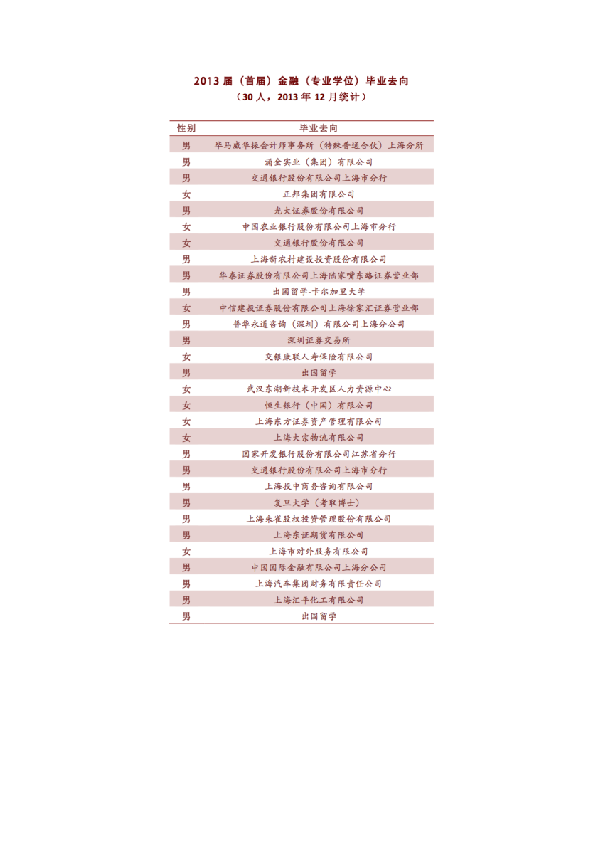 2013届金融(专业学位)硕士毕业去向