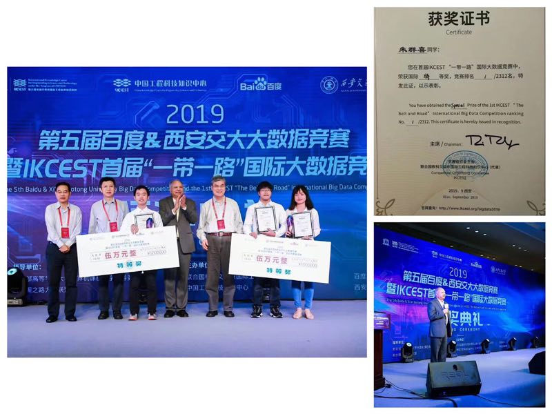 数学科学学院2016级直博生朱群喜参加了本年度一带一路国际大数据竞赛,获得了特等奖(在所有参赛队伍中排名第一),潘云鹤、徐宗本院士颁奖。目前,朱群喜在csc支持下在哈佛大学医学院开展生物数据分析的研究。