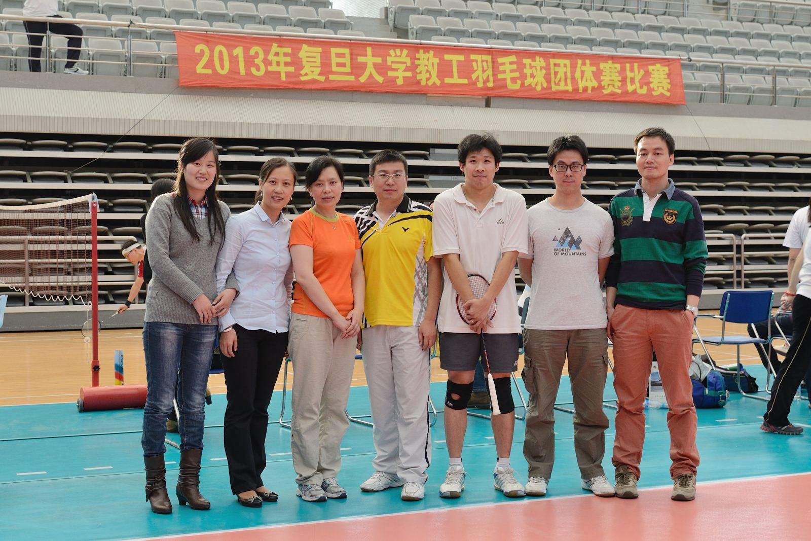 2013年度复旦大学教工羽毛球团体赛于11月5日落下帷幕。全校共计33支代表队参加比赛,通过层层选拔和激烈拼搏,数学科学学院代表队勇夺团体赛第5名,展现了数学人的拼搏精神,为学院赢得了荣誉。代表学院参加团体赛的选手有周国晖、梁振国、朱慧敏、黄上。
