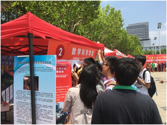 5月25日中午,复旦大学党委学生工作部在本部排球场举行“党员在我身边”本(专)科生党员志愿服务主题党日活动,宣传学生党建服务项目。数学科学学院特色党建项目“数院大神”作为复旦大学本(专)科生党员志愿服务联盟中的重要一员也积极参与到本次活动中。本次活动在数学科学学院学生党总支的指导下进行,旨在带领同学们感受数学魅力,进一步宣传“数院大神”答疑服务活动,为更多的在校同学服务。