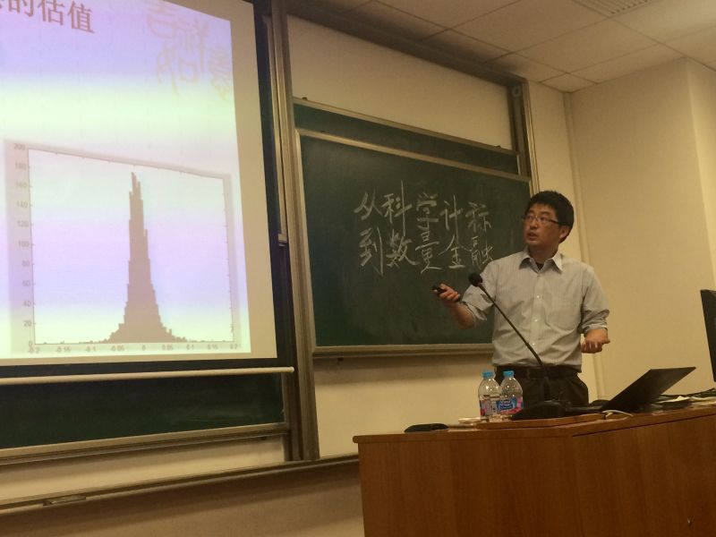 接着陈老师从自己的研究方向——科学计算开始讲起,逐渐过渡到金融市场的方方面面。在一个半小时的讲座中,陈文斌老师为大家深入浅出地讲解如何将科学计算与金融建立联系,以及如何利用理论知识在金融市场里创造套利机会。精彩的内容加上陈老师幽默诙谐的口吻让现场掌声不断,也使得听众明白这些知识不仅仅只是一种理论,其背后更具有很强的实践指导意义。