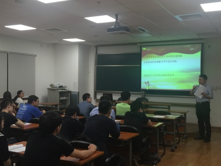 6月24日,2015级科学学位研究生支部及2014、2015级本科生联合党支部在光华楼1801召开“守规矩,讲纪律”主题组织生活会。数学科学学院党委书记侯力强同志参加此次组织生活,从信心、组织和纪律三个词出发,结合历史与现实,为学生党员们上了一堂“两学一做”专题党课。