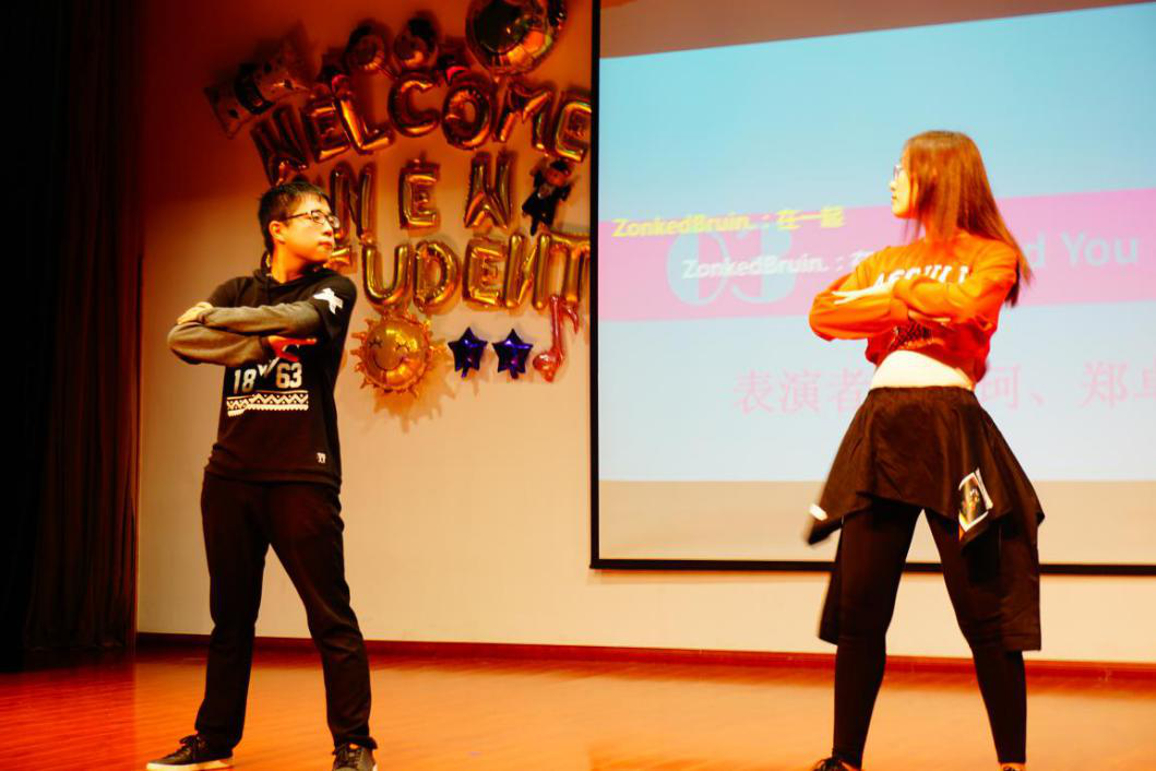 晚会伊始,学院研工组组长王周俊老师为晚会热情致辞,他代表研工组欢迎新同学的加入,激励大家在以后的研究生生活中积极进取,并希望大家能够度过开心愉快的晚上。之后,2017级专业学位硕士班辅导员周悦老师用一首《简单爱》正式拉开了晚会的帷幕。轻松愉快的歌曲后,张珂和郑卓群搭档表演的舞蹈《I need you》伴随着震撼的音乐,激扬起青春的风采,使晚会的气氛瞬间高涨起来。