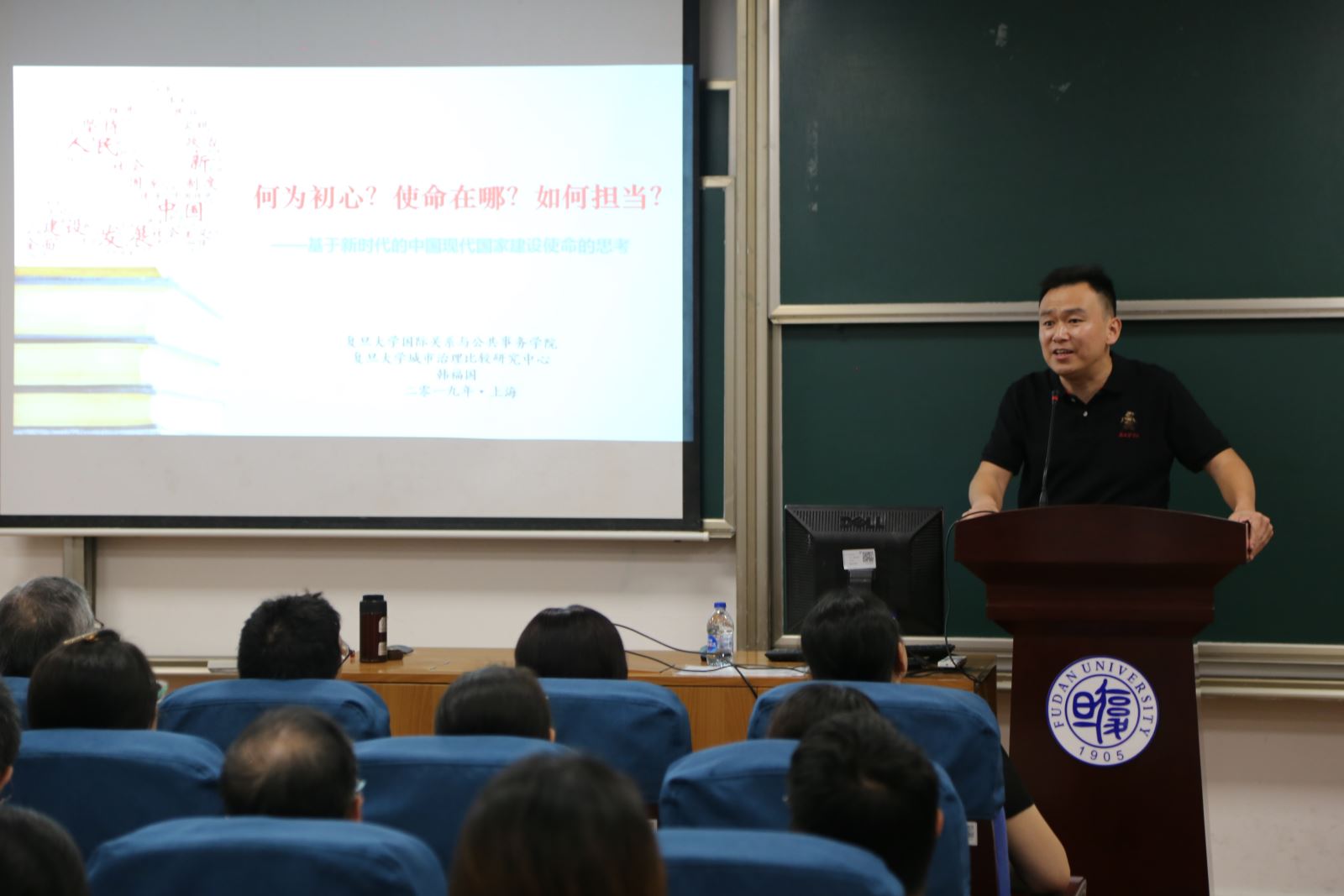 9月24日下午,数学科学学院党委组织开展“不忘初心、牢记使命”为主题的教职工政治理论学习,邀请我校国际关系与公共事务学院副教授、上海市党建特邀研究员、复旦大学城市治理研究中心主任韩福国老师作《何为初心?使命在哪?如何担当?》的主题讲座,数学科学学院、上海数学中心、大数据学院全体教职工参加了学习活动。