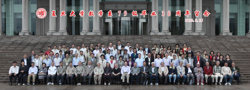 2013年5月18日上午,复旦大学数学系1979届校友举行了毕业30周年聚会。聚会在复旦光华东楼一楼大厅举行,逾100位校友参加。李大潜院士、郭坤宇院长、侯力强书记、王永珍副院长及部分老教师参加了这次聚会。