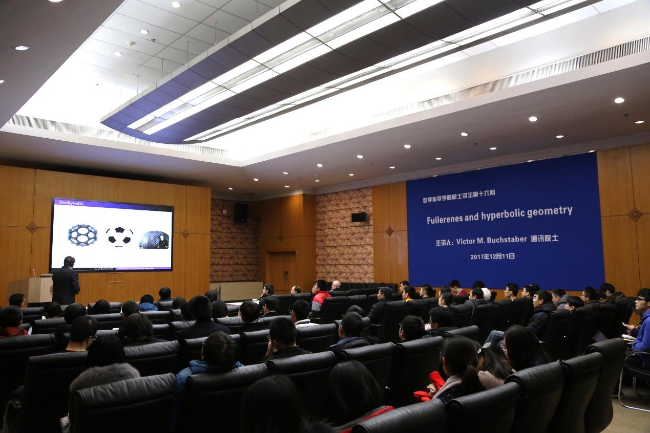 12月11日下午,数学科学学院在逸夫科技楼多功能厅举办了第十六期“院士讲坛”,邀请俄罗斯科学院通讯院士Victor M. Buchstaber作题为“Fullerenes and hyperbolic geometry”的专题报告,数学科学学院一百余名师生到场聆听。