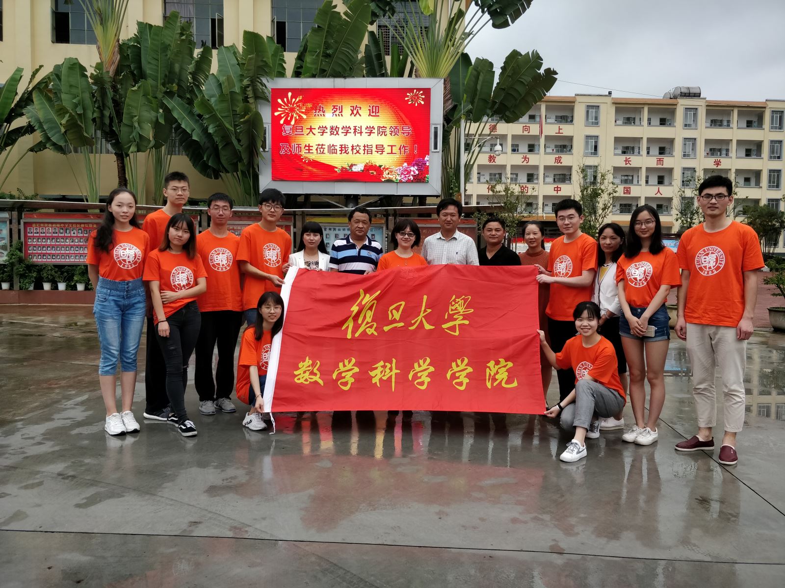 7月7日,复旦大学数学科学学院师生一行十余人抵达云南省德宏傣族景颇族自治州,他们将在德宏州民族初级中学(北校区)和芒市第一小学开展为期一周的教学实践活动。
