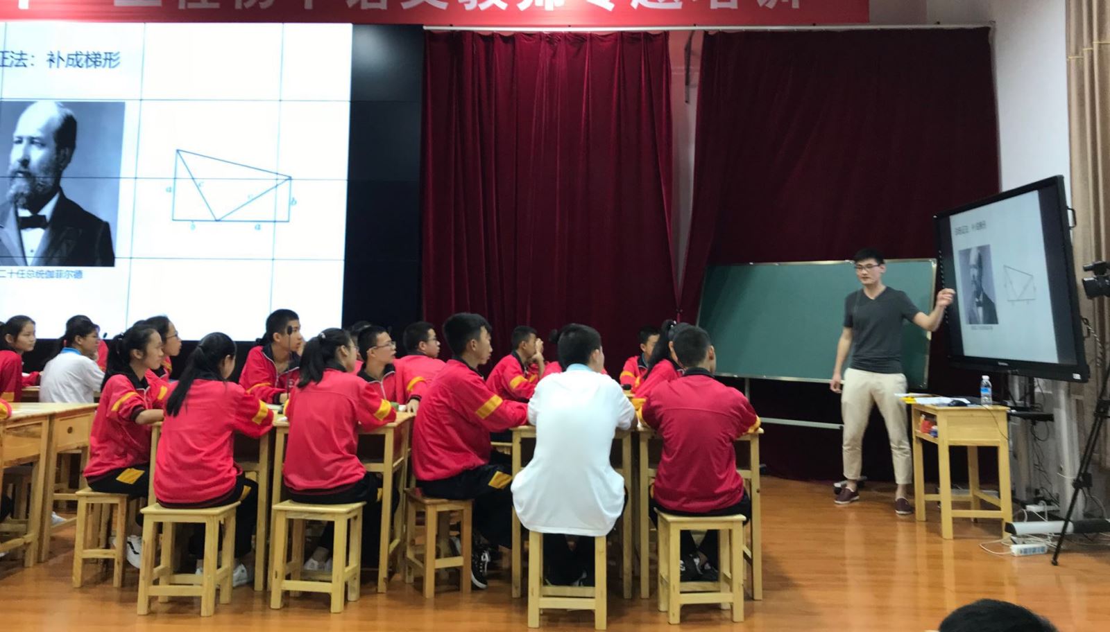 教学实践首日,以“勾股定理的故事”为主题的初二数学课程持续一个半小时,实践团队从勾股定理在古代各个文明的发现过程讲起,结合中外数学故事,介绍了勾股定理的十多种证明、勾股定理的应用等,数学教研组教师全程参与听课,纷纷表示这一教学思路为他们现有的教学方式开拓了思路,受益匪浅。《英语口语与交际》、科普课程《从微观到宏观》、《天文博览》等都结合丰富的课件资料和充足的集体备课、试讲工作,为学生们带来不一样的学习体验,从而进一步激发学习兴趣,增加学习动力。为进一步加强家校联系,实践团队在四个晚上为八百多位学生家长开设主题报告会,分析青春期孩子的身心特点和家庭教育要点,并向他们介绍复旦大学在学生培养方面的理念和举措。交流会上,实践团队成员还积极和家长分享自己的成长故事,受到家长们的一致好评。