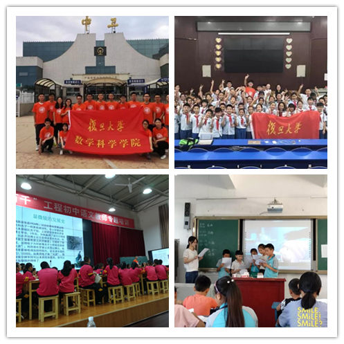 7月7日,数学科学学院师生一行十余人抵达云南省德宏傣族景颇族自治州,在德宏州民族初级中学(北校区)和芒市第一小学开展为期一周的教学实践活动。德宏民族初级中学的学生人数多,生源层次不一,有近一半是留守儿童。实践团队以《勾股定理的故事》、《英语口语与交际》、《从微观到宏观》、《天文博览》等为主题授课,为学校教研组老师开拓教学思路,给学生们带来别样的学习体验,激发了学习的兴趣和动力。为进一步加强家校联系,实践团队在四个晚上为八百多位学生家长开设主题报告会,分析青春期孩子的身心特点和家庭教育要点,介绍复旦大学在学生培养方面的理念和举措,受到家长们的一致好评。在芒市一小,实践团队为学生精心准备了梦想教育、趣味英语、趣味数学、营养与健康等课程,小老师们根据孩子的年龄和专注度情况,设置了短片观赏、提问讨论和游戏环节,师生互动性强,同学们踊跃发言、热情反馈,教学实践取得了良好效果。