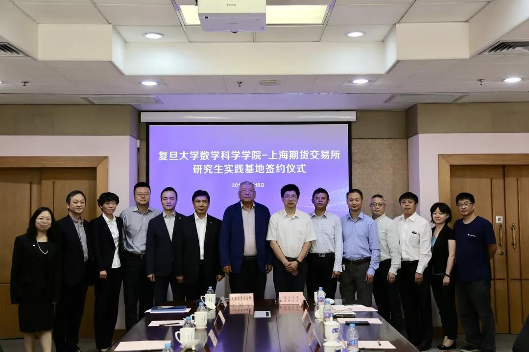 陈猛和叶春和作为双方代表签订合作备忘录,并合影留念。双方就基地建设的具体举措、专业结合点等进行了简短交流。未来复旦大学数学科学学院和上海期货交易所将共同致力于培养教学与科研并重、理论与实践结合的应用型高层次人才,共同开展数学与金融理论方面研究合作。
