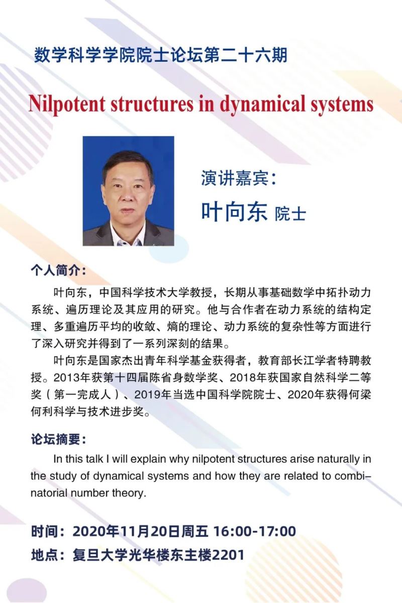 院士讲坛第二十六期:Nilpotent structures in dynamical systems