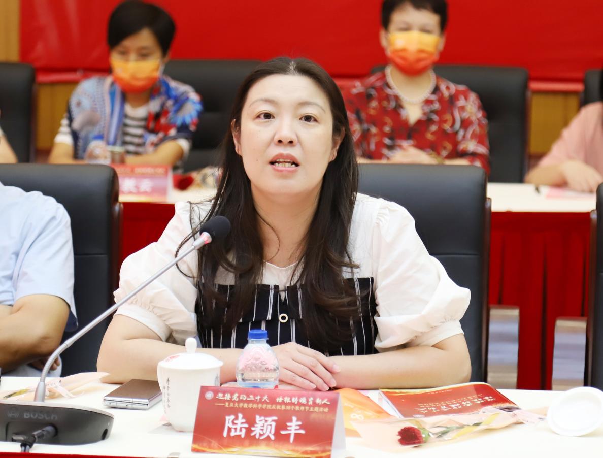 陆颖丰副处长首先向各位教师致以节日的问候。她表示,数学作为一门基础学科,发展过程中对外界资源更为依赖,数学学院积极拓展社会资源,企业方设立多个奖教金,对学院教师队伍的稳定提供了重要支撑,在全校起到了标杆作用。在国家的大力引导下,更多的企业关注、参与到基础学科的发展中,实现了教学相长的作用,诚挚期待学科发展应用能够为企业发展提供更好服务。随后宣读2021年度刘宁侯明华教学发展基金、兴证全球责任奖教金、领航基金、新纪元奖教金、韬睿惠悦奖教金、太平-复旦奖教金、上海金锝发展基金、念空基金、智梭奖教金获奖名单。