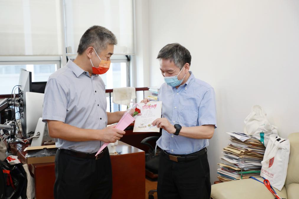 会前,数学学院党委按历年传统,继续举办教师节“鲜花敬老师·贺卡送祝福”活动,为数学科学学院、上海数学中心的教职工送上鲜花和教师节祝福。