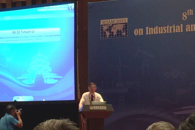 Professor Ta-Tsien LI (CAS member) was invited to give a 45-minute address at the 8th International Congress on Industrial and Applied Mathematics (ICIAM 2015), to be held in Beijing, China. He was awarded the ICIAM Su Buchin Prize in recognition of his outstanding contributions to applied mathematics and to the dissemination of mathematical sciences in developing countries. His work was introduced in the opening ceremony by the CAS member Yaxiang YUAN on behalf of ICIAM.