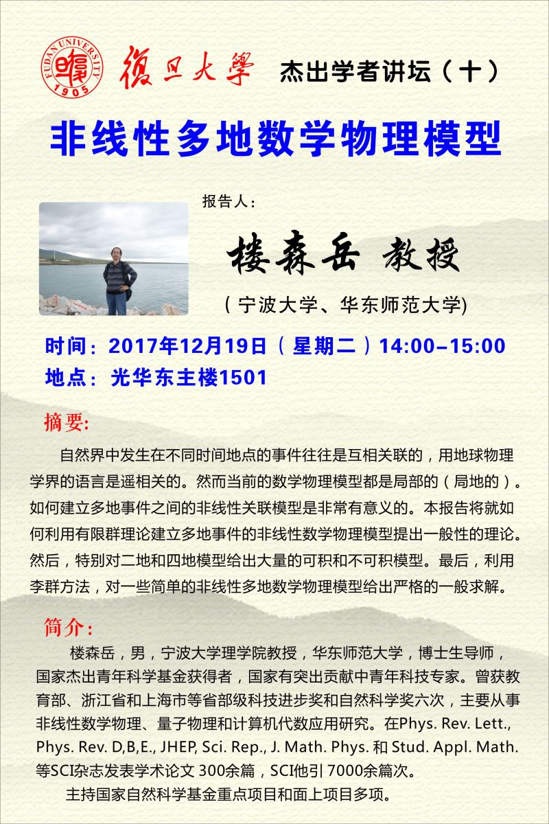 | Presentation Name: | 杰出学者讲坛(十):非线性多地数学物理模型 |