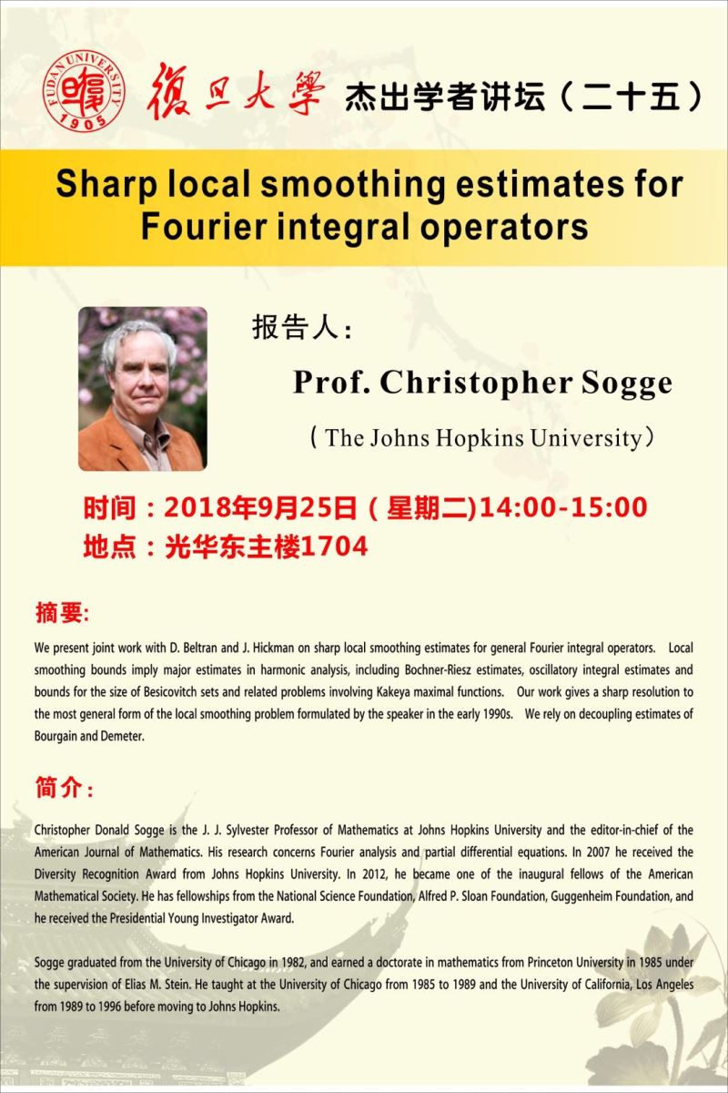 | Presentation Name: | 杰出学者讲坛(二十五):Sharp local smoothing estimates for Fourier integral operators |
