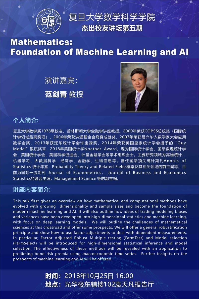 | Presentation Name: | 杰出校友讲坛第五期:Mathematics: Foundation of Machine Learning and AI |