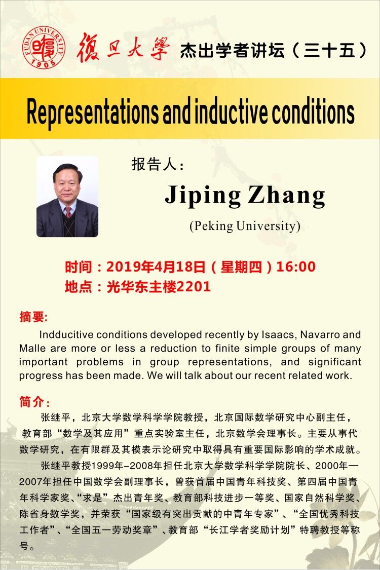 | Presentation Name: | 杰出学者讲坛(三十五):Representations and inductive conditions |
