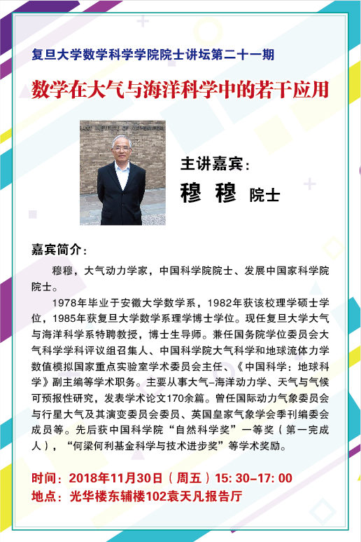 院士讲坛第二十一期:数学在大气与海洋科学中的若干应用